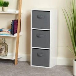 Hartleys White 4 Tier Cube Storage Unit & 4 Handled Box Drawers